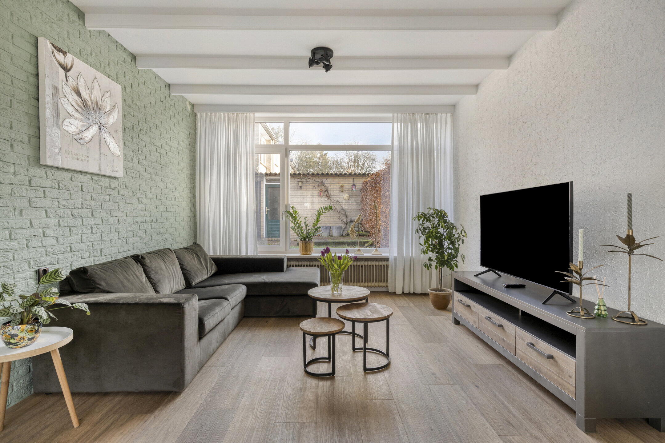 Wat direct opvalt is dat de woning lekker licht is; dat komt door de grote raampartijen Onderscheidend is ook dat de woning aan een autoluw hofje ligt waar precies voor de deur parkeergelegenheid en een groenstrook ligt. De wijk is ruim opgezet met louter laagbouw in een combinatie van diverse type woningen.