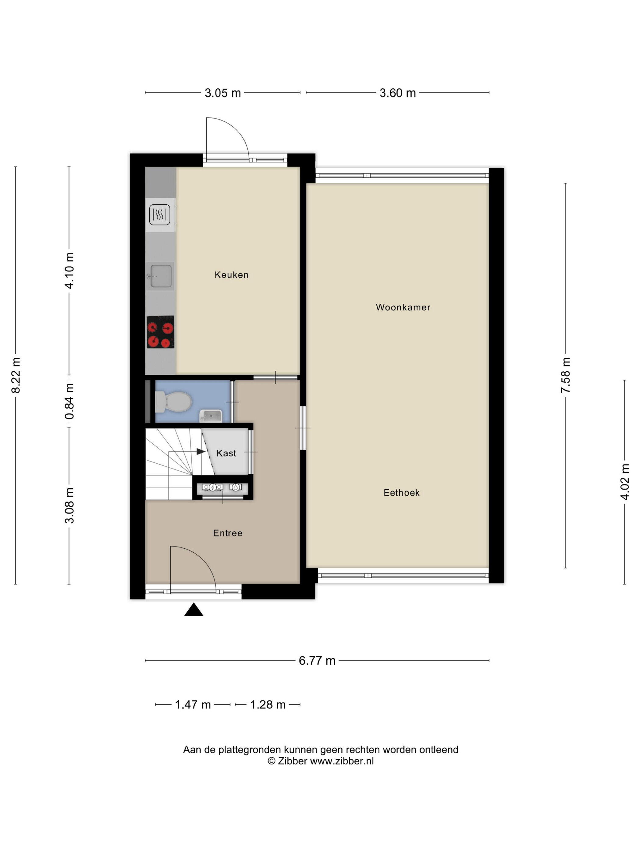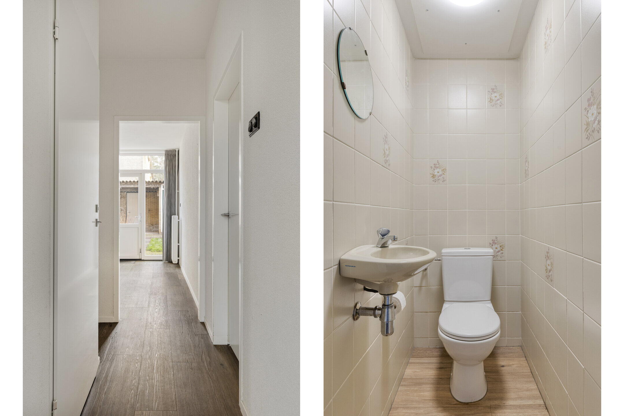 Begane grond: entree; hal met meterkast, trapkast en toilet met fonteintje.