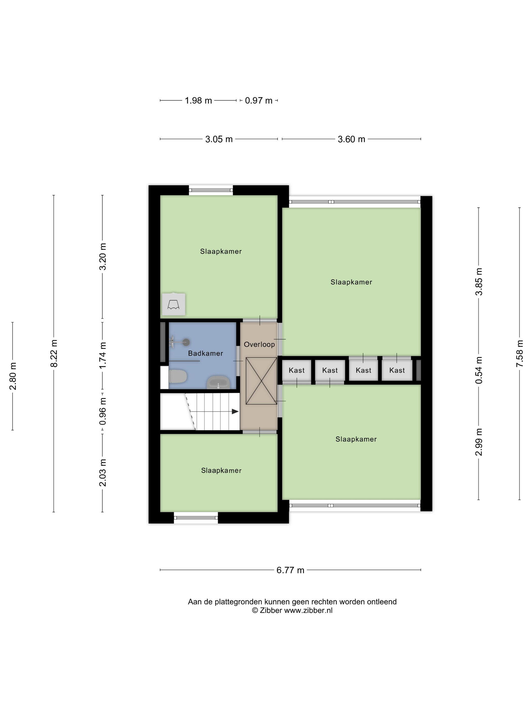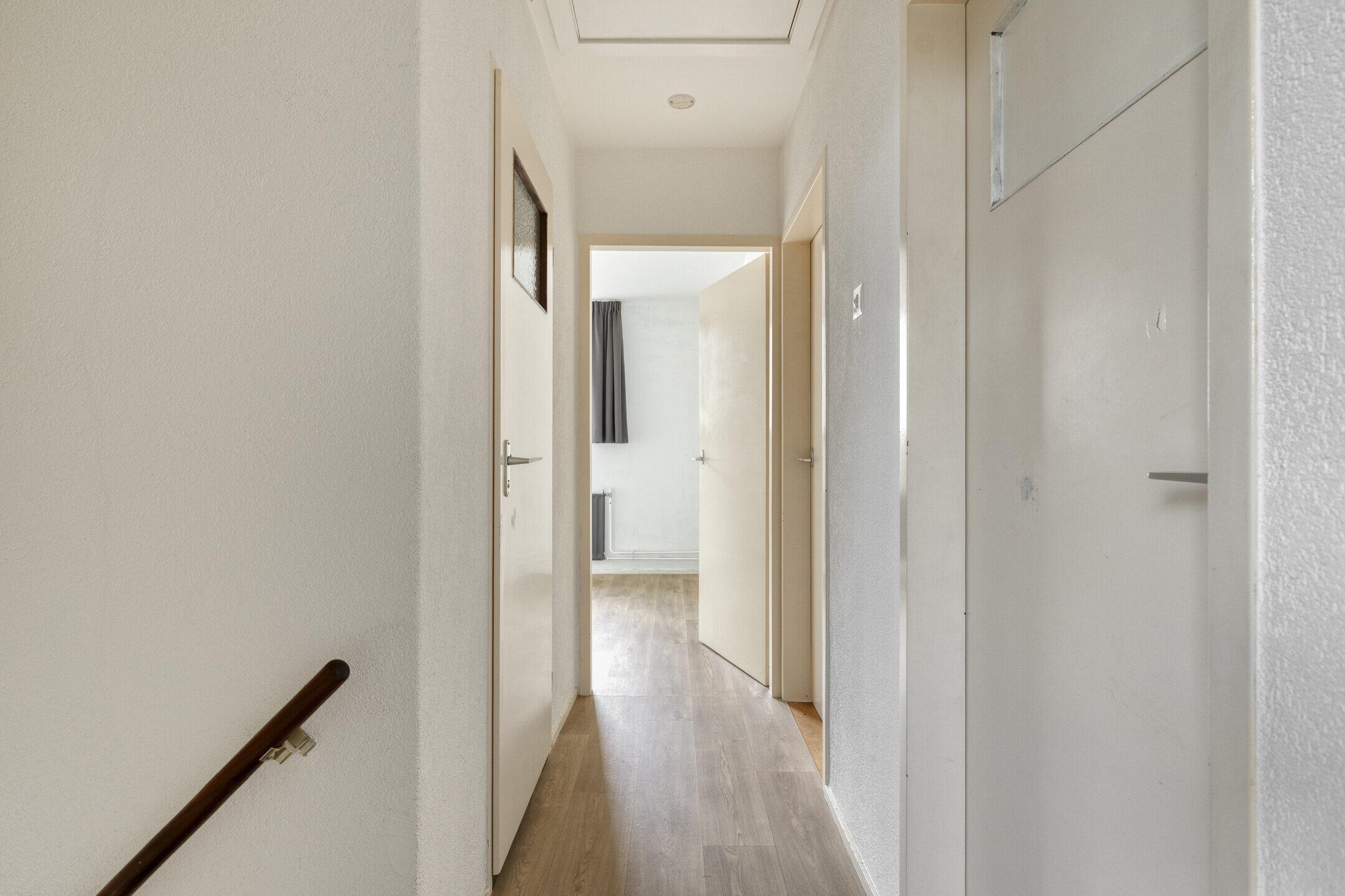 Eerste verdieping: overloop; vier slaapkamers en een badkamer. Van de vier slaapkamers zijn de twee grootste kamers voorzien van inbouwkasten. Die aan de voorzijde meet 11 m² en de slaapkamer aan de achterzijde meet zelfs 14 m². Slaapkamer 3 aan de achterzijde is 10 m² en de kamer aan de voorzijde van 6 m² biedt de mogelijkheid om een vaste trap naar de zolderetage te laten vertrekken.