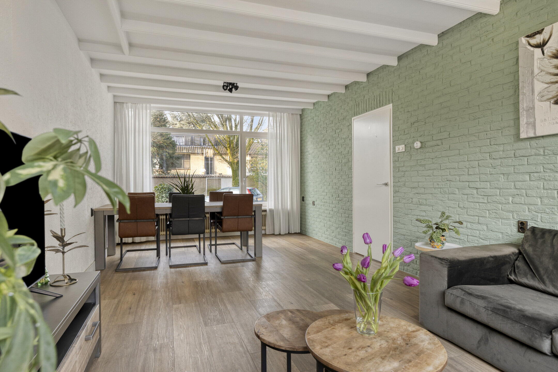 De doorzon woonkamer is lekker breed en heel erg licht. Het is mogelijk de muur tussen de woonkamer en keuken door te breken, met de opstellinge nieuwe keuken is daar al rekening mee gehouden.